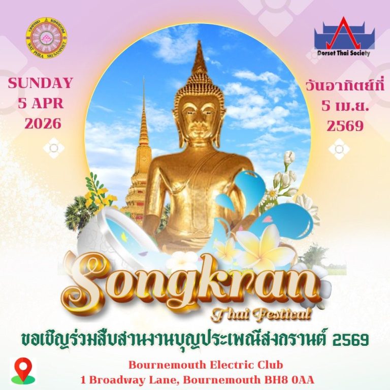 Please join us for the celebration of Songkran Festival in Bristol, enjoying traditional blessings, merit-making, Thai culture, food, and joyful community activities welcoming the Thai New Year together.